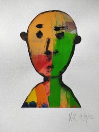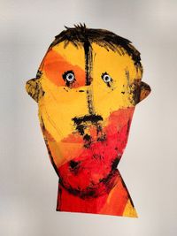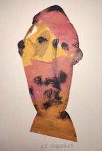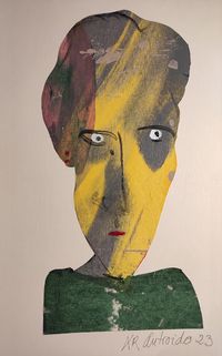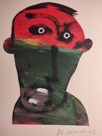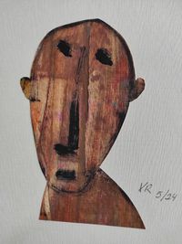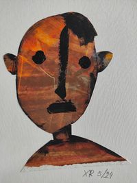 Os "caretos" están feitos coa técnica de colaxe de paspartout e acrílico sobre cartón.