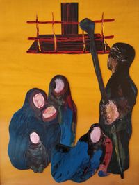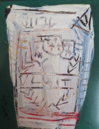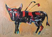 A Ofrenda - 13055 60x60cm - Acrílico sobre madera | Abstracto en roxo - 13059 49x68cm - Acrílico sobre cartón | Canis home - 13060 65x54cm - Acrílico sobre lienzo |